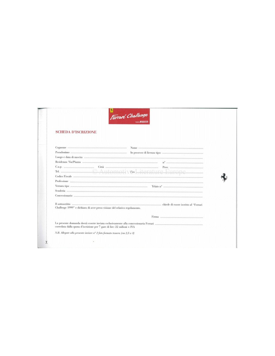 1999 FERRARI CHALLENGE TROFEO PIRELLI BROCHURE ITALIAANS