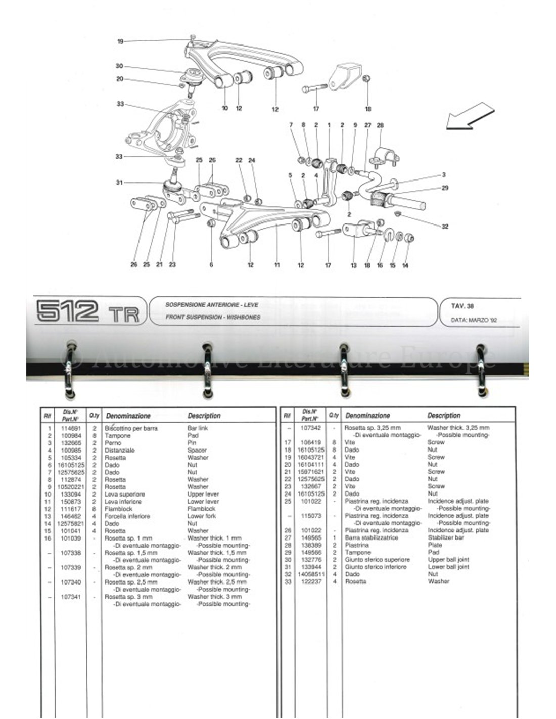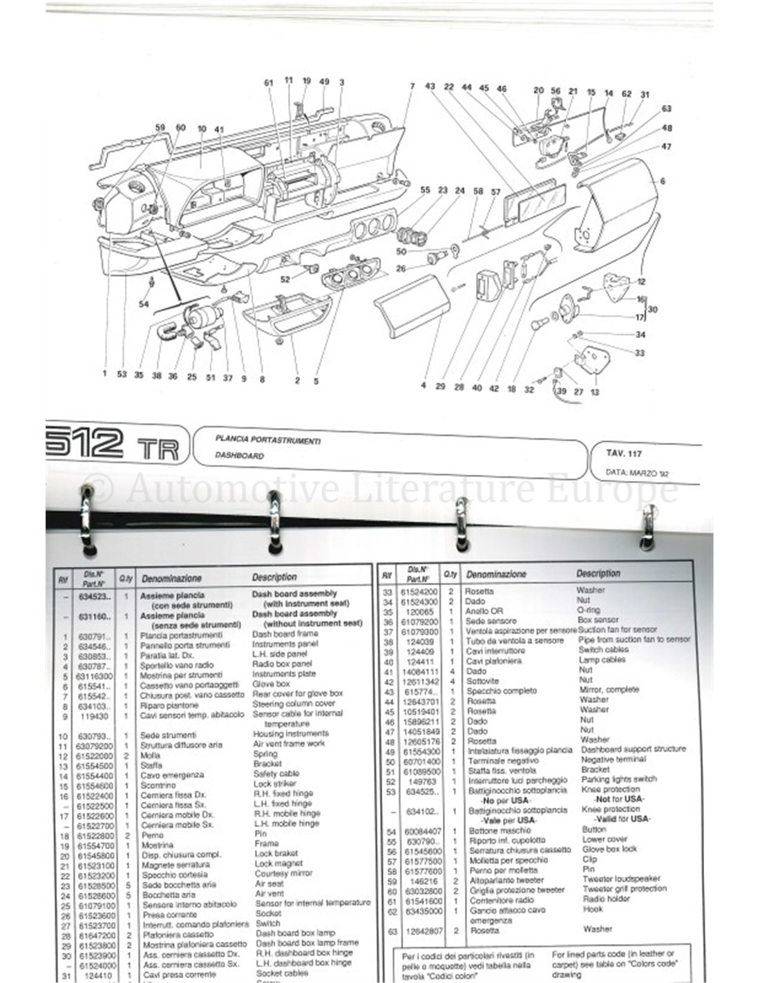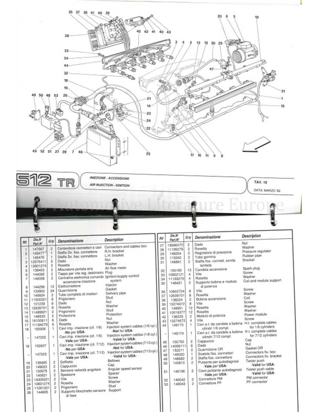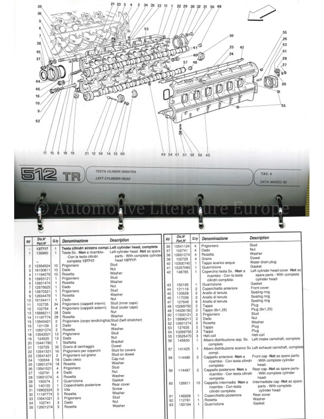 1992 FERRARI 512 TR ONDERDELENHANDBOEK 708/92