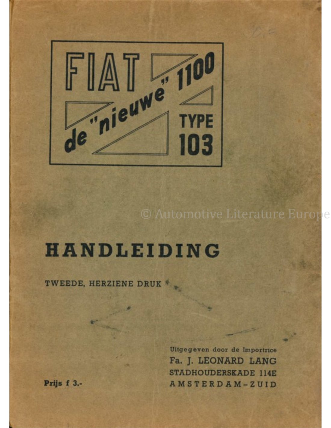 1954 FIAT 1100 TYPE 103 INSTRUCTIEBOEKJE NEDERLANDS