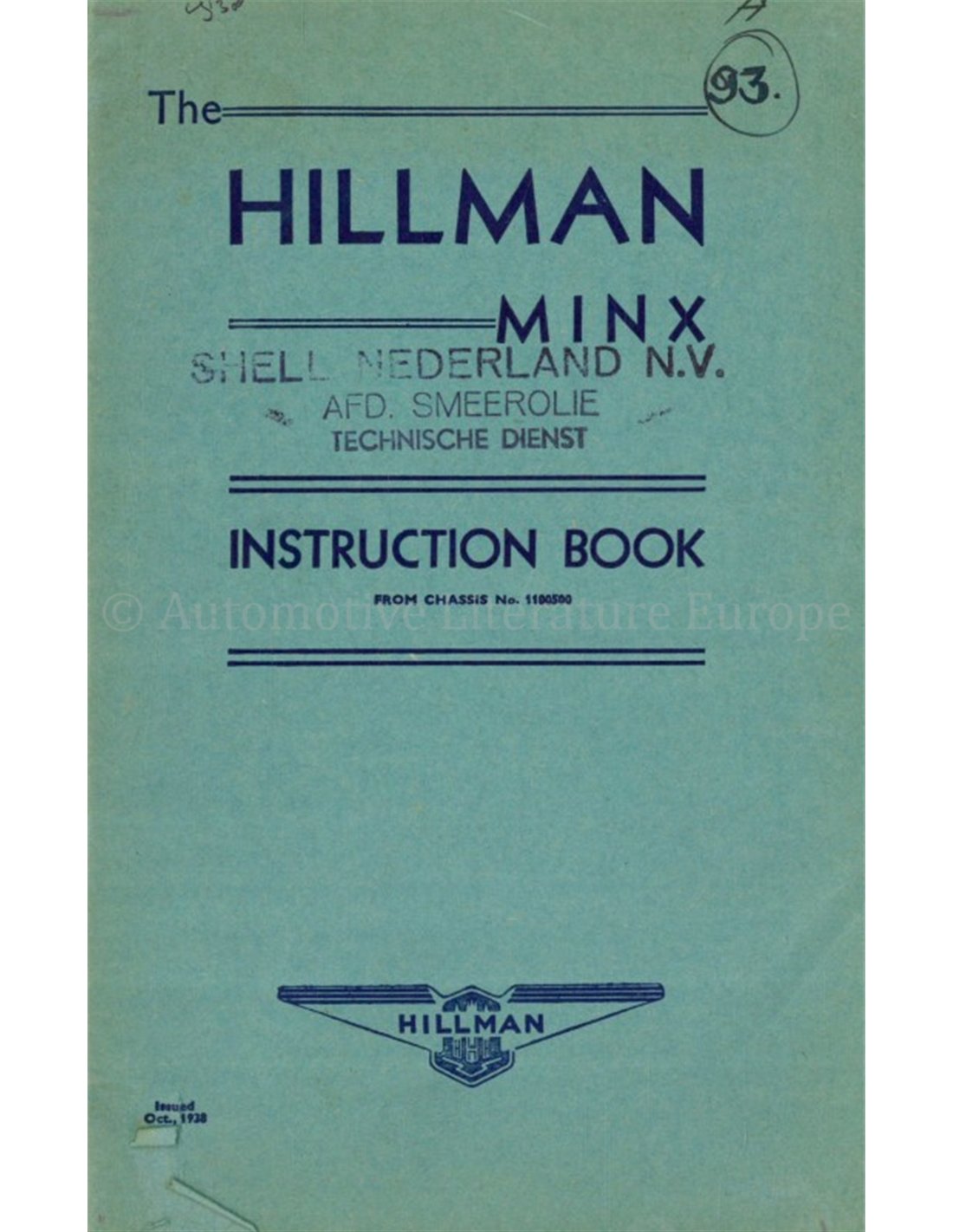 1939 HILLMAN MINX INSTRUCTIEBOEKJE ENGELS