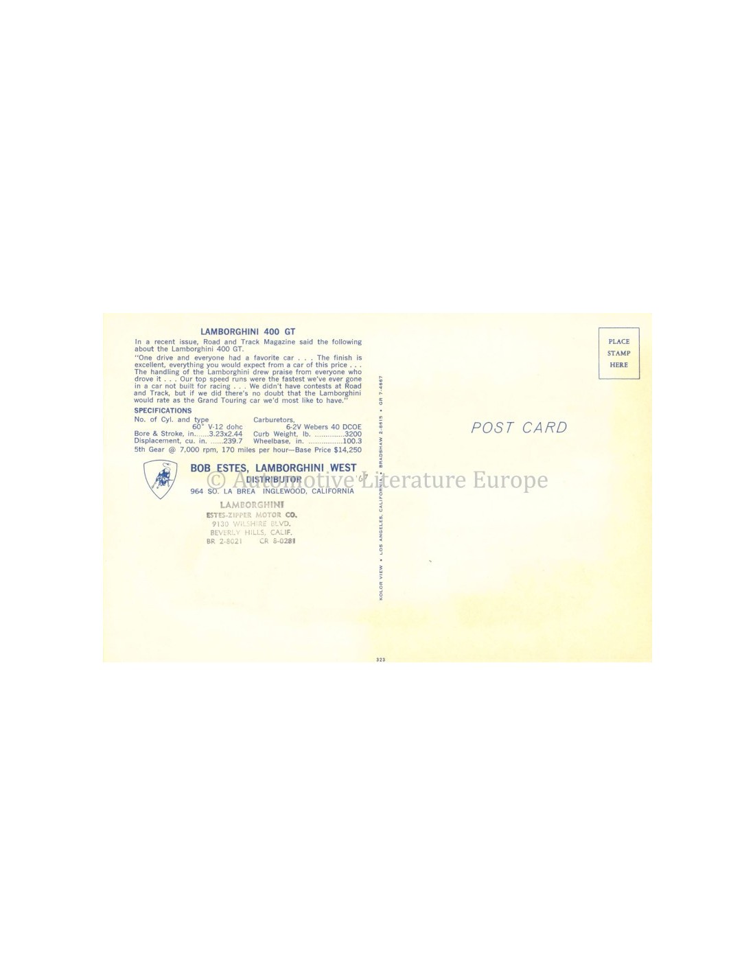 1967 LAMBORGHINI 400 GT ANSICHTKAART
