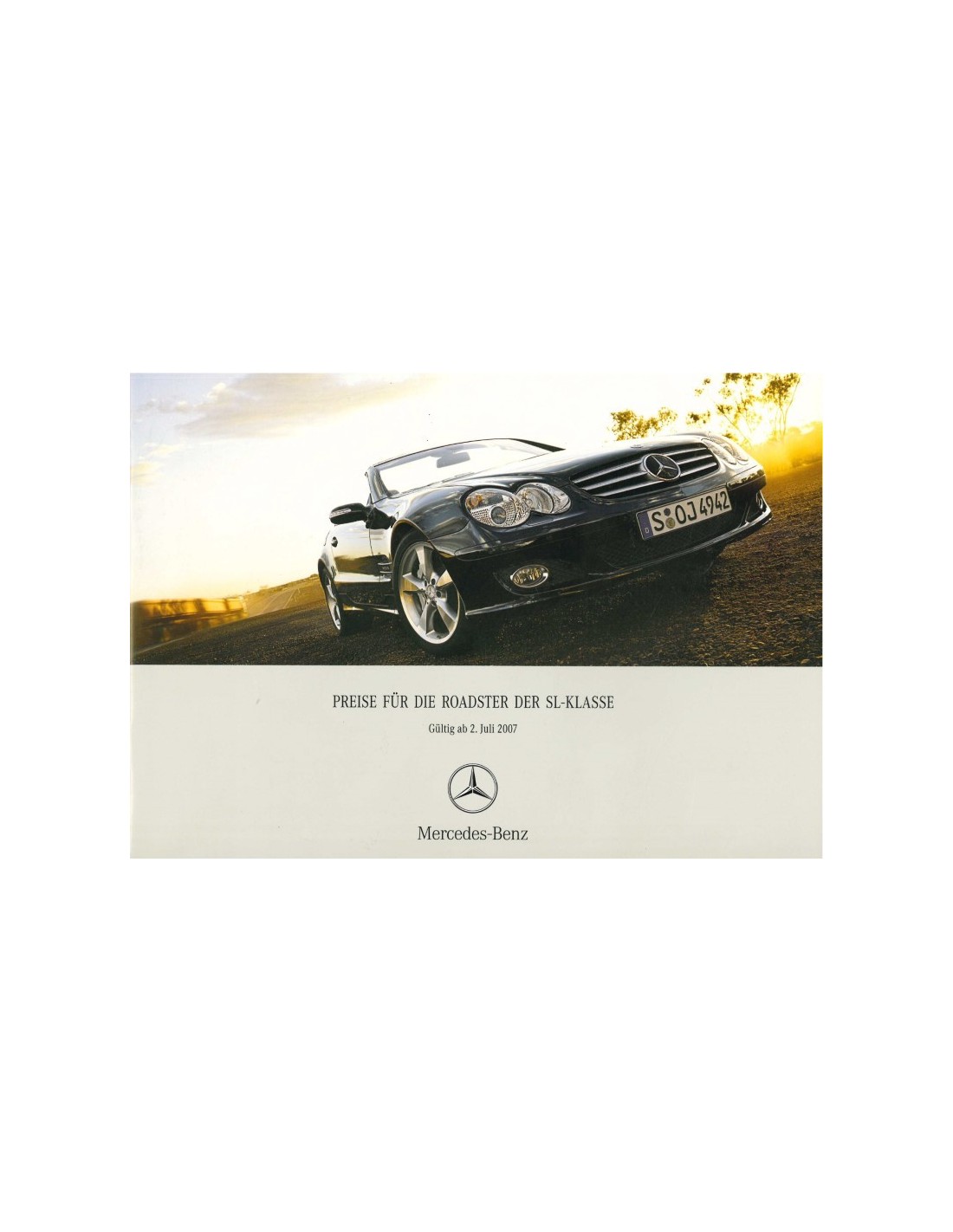 2007 MERCEDES BENZ SL HARDCOVER BROCHURE DUITS