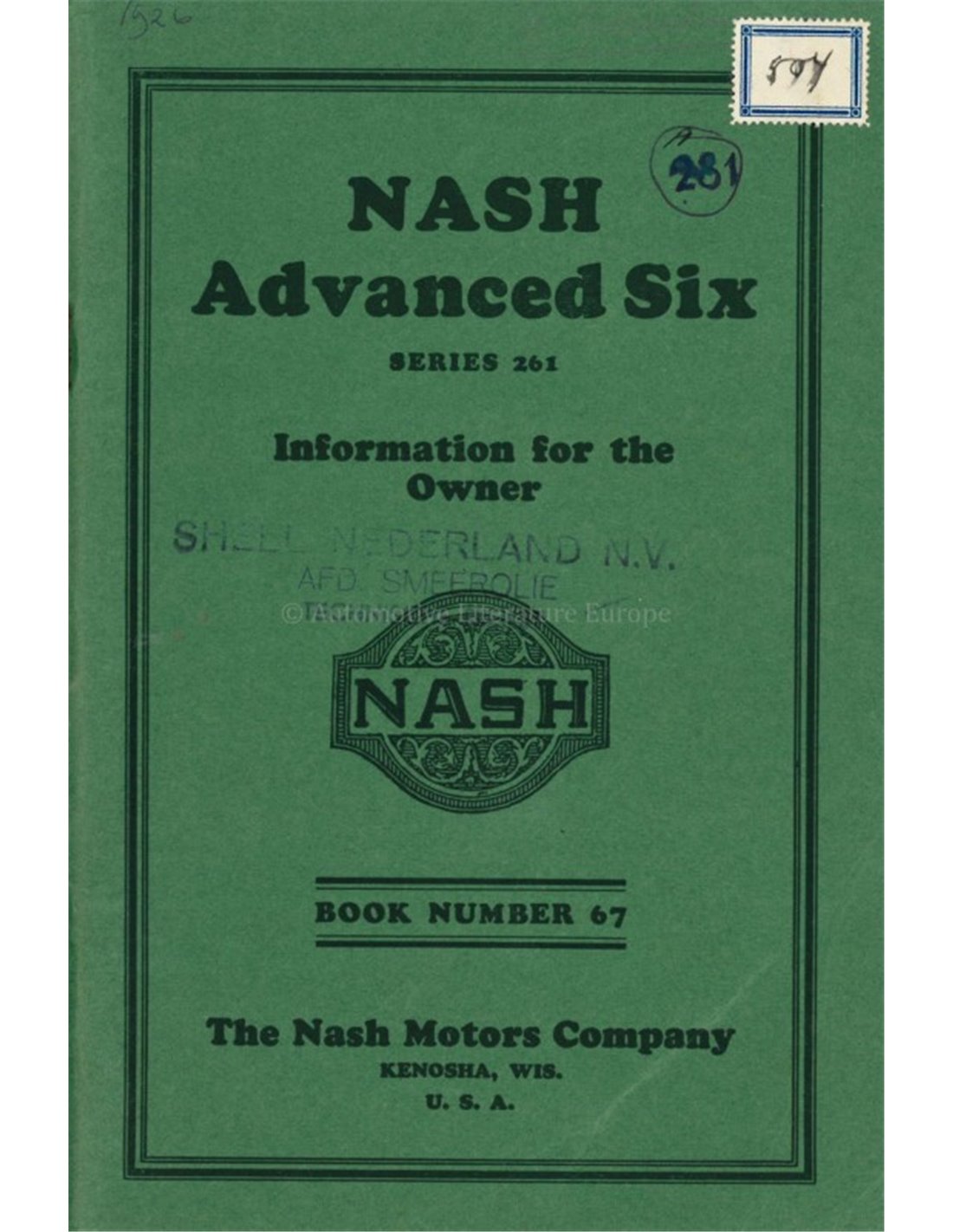 1926 NASH ADVANCED SIX INSTRUCTIEBOEKJE ENGELS