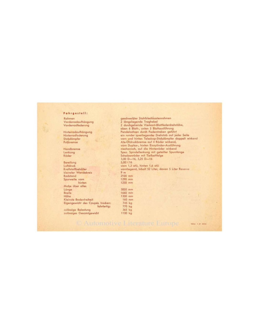 1951 PORSCHE 356 BROCHURE DUITS