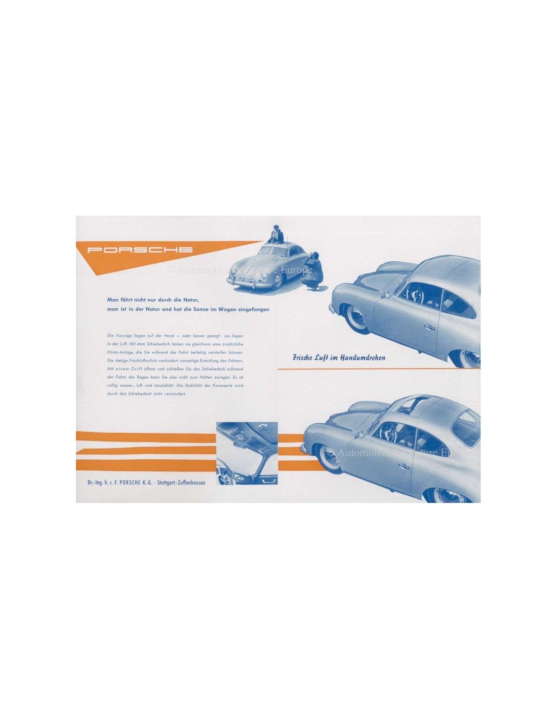 1953 PORSCHE 356 SCHIEBEDACH BROCHURE DUITS