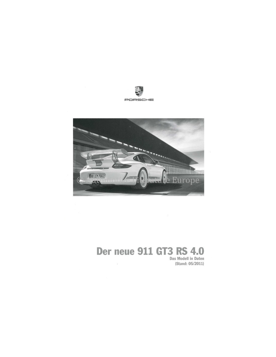 2011 PORSCHE 911 GT3 RS 4.0 TECHNISCHE GEGEVENS DUITS
