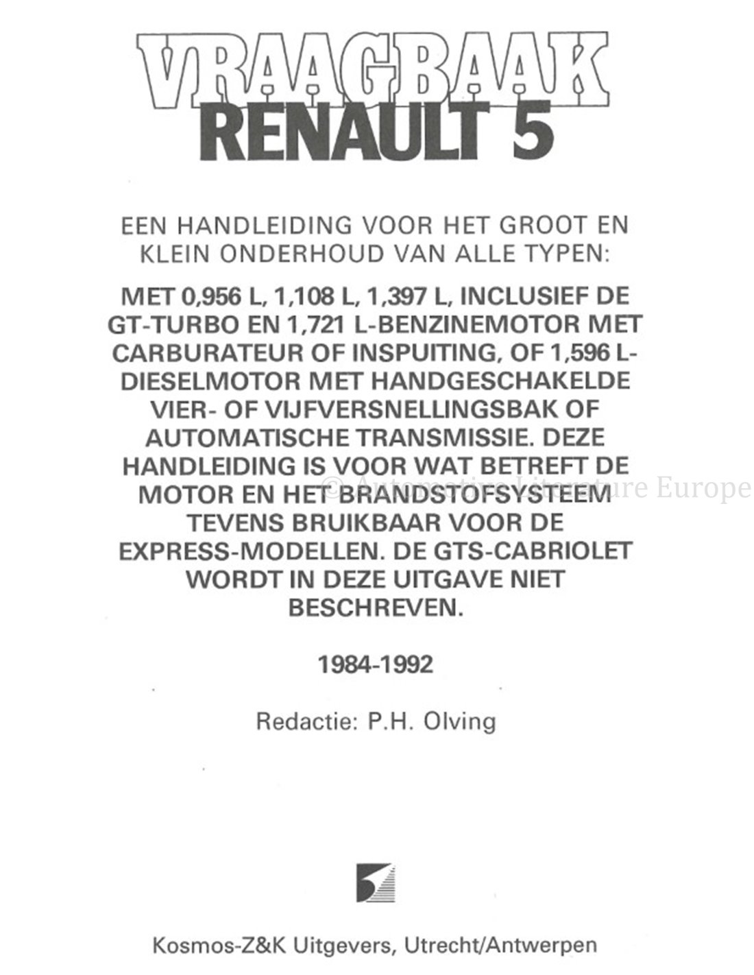 1984 - 1992 RENAULT 5 BENZINE | DIESEL VRAAGBAAK NEDERLANDS