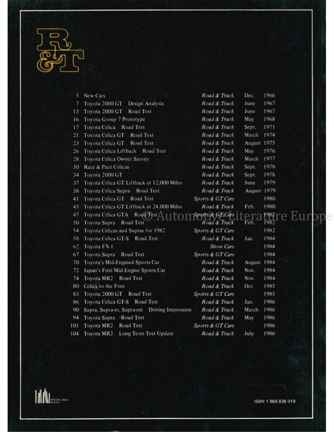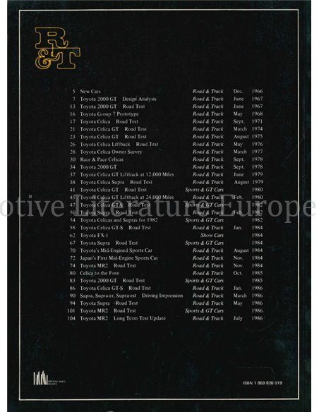 ROAD & TRACK ON TOYOYTA SPORTS & GT CARS 1966 - 1986