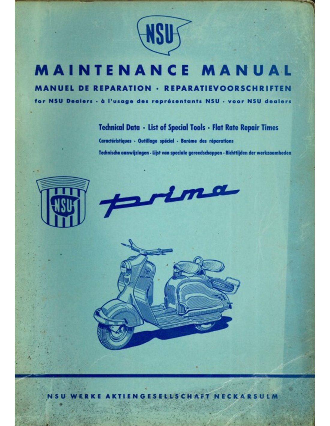 1955 NSU PRIMA WERKPLAATSHANDBOEK MULTI